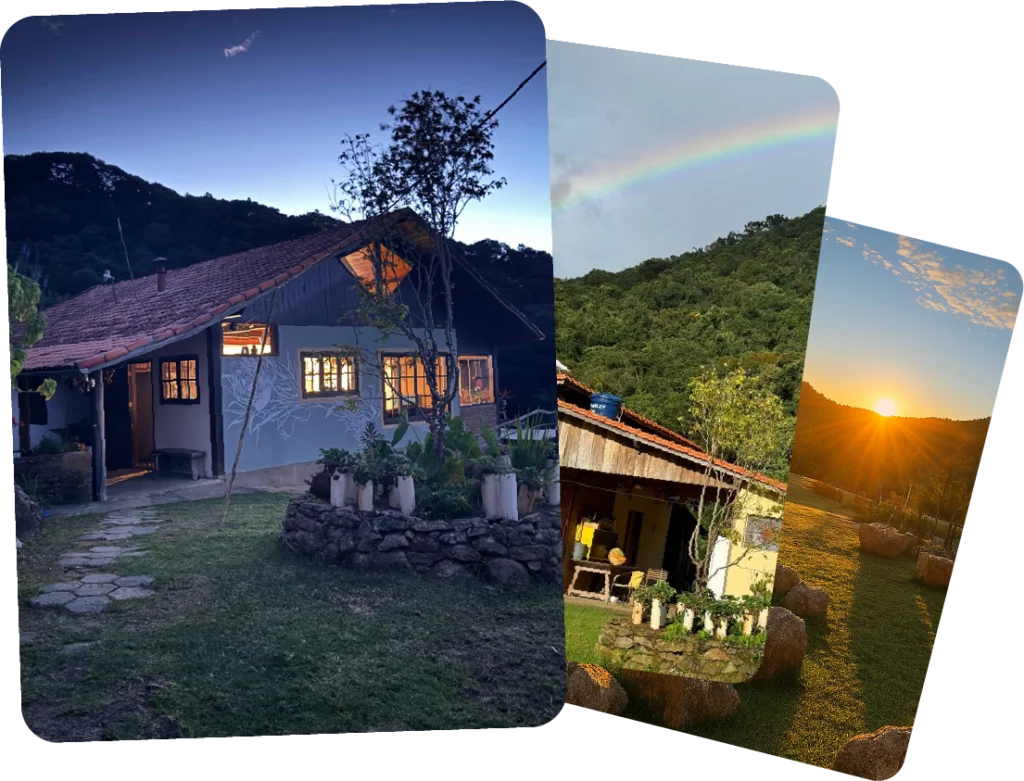 Nosso objetivo é receber grupos para trabalhos terapêuticos, retiros e cursos em um espaço imerso em uma natureza vibrante, com suas montanhas, água de nascente, horta orgânica e atendimento acolhedor. Um lugar onde possamos olhar de forma respeitosa e delicada para nós mesmos e nossas relações.
