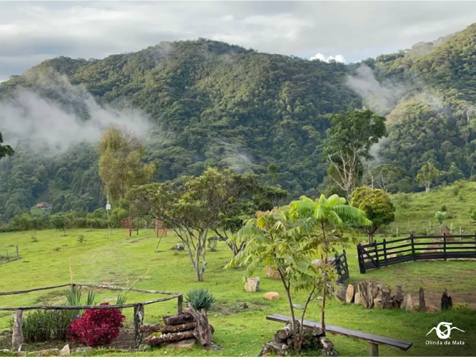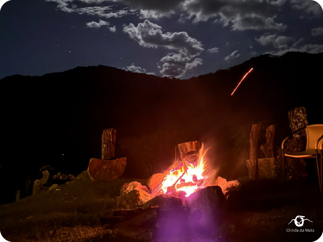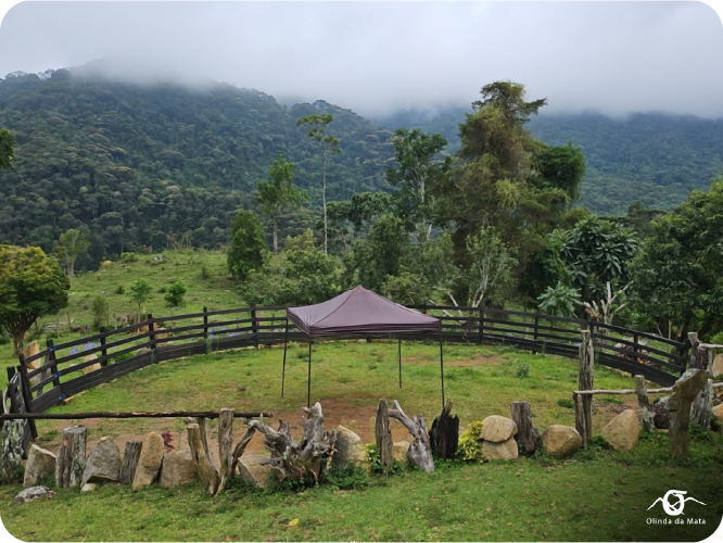 Somos um brocado, uma colcha de retalhos costurada por uma história reversa sem fim. Um fluxo contínuo de passadopresentefuturo, que ganha vida quando o recheamos de desejo, magia e escolhas. O Sítio Olinda da Mata está imerso nesse fluxo. Tem raízes em um passado rural familiar, em um menino voraz acolhido pela Mãe Terra, em um adulto que intuiu e construiu caminhos, e que agora, na maturidade, realiza um sonho — de mãos dadas com sua companheira. Olinda da Mata tem como propósito o acolhimento, a conexão e a restauração de futuro. Acolhimento e conexão consigo mesmo, com o planeta, com a dimensão espiritual. Restauração de futuro — para viver com mais plenitude e sonhar em sintonia com os povos nativos, sustentação do Céu.